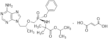 | 【成份】 | 主要成份:富馬酸艾米替諾福韋 化學名稱:9-[(R)-2-[[(S)-[[[1-(異丙氧基羰基)-1-甲基]乙基]氨基]苯氧基氧膦基]甲氧基]丙基]腺嘌呤富馬酸鹽。 化學結構式: